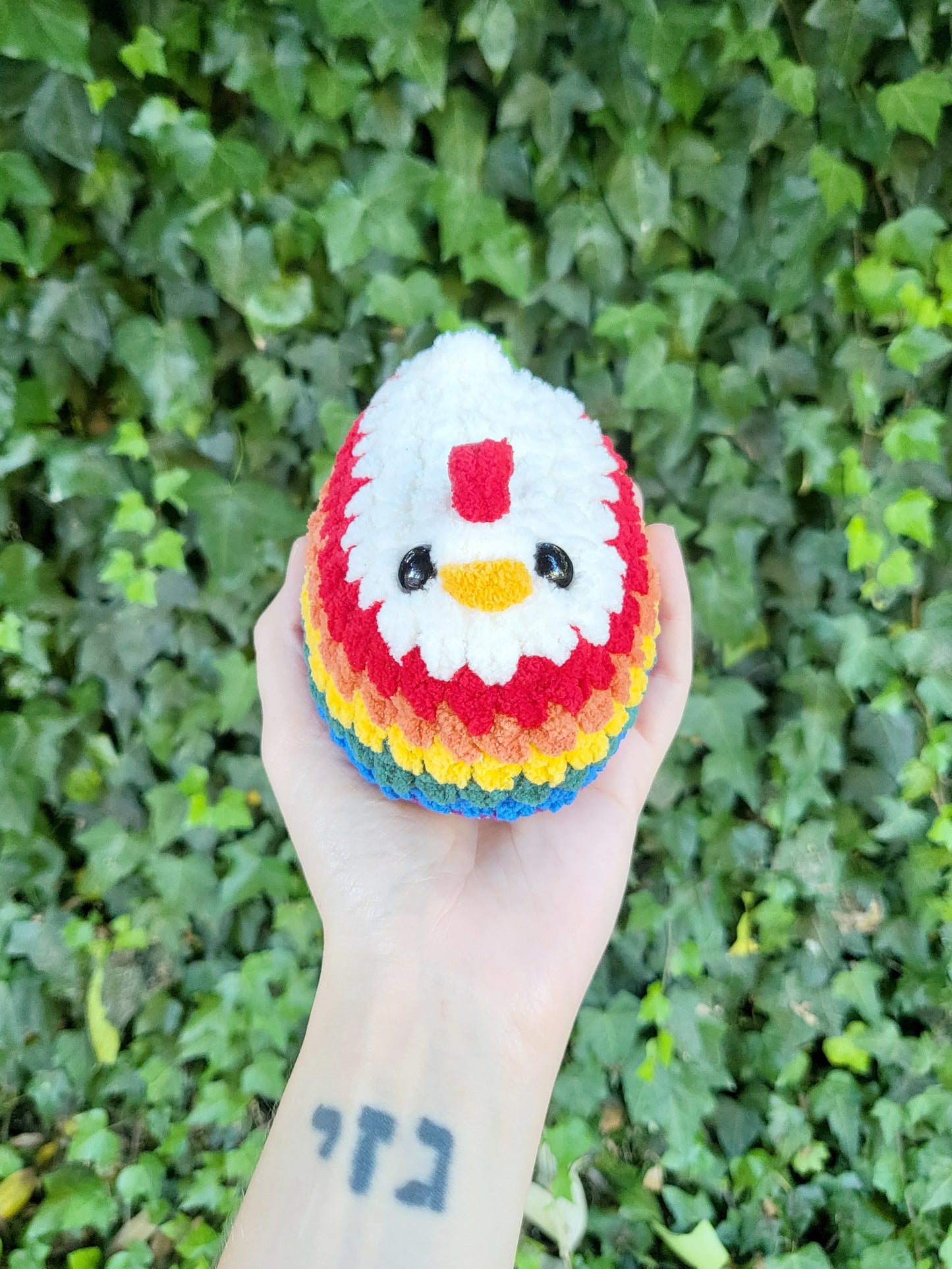 Different colors (including your pride flag) can be made upon request! Please use the Contact page on our site. Also, check out our classic chicken plushies HERE!