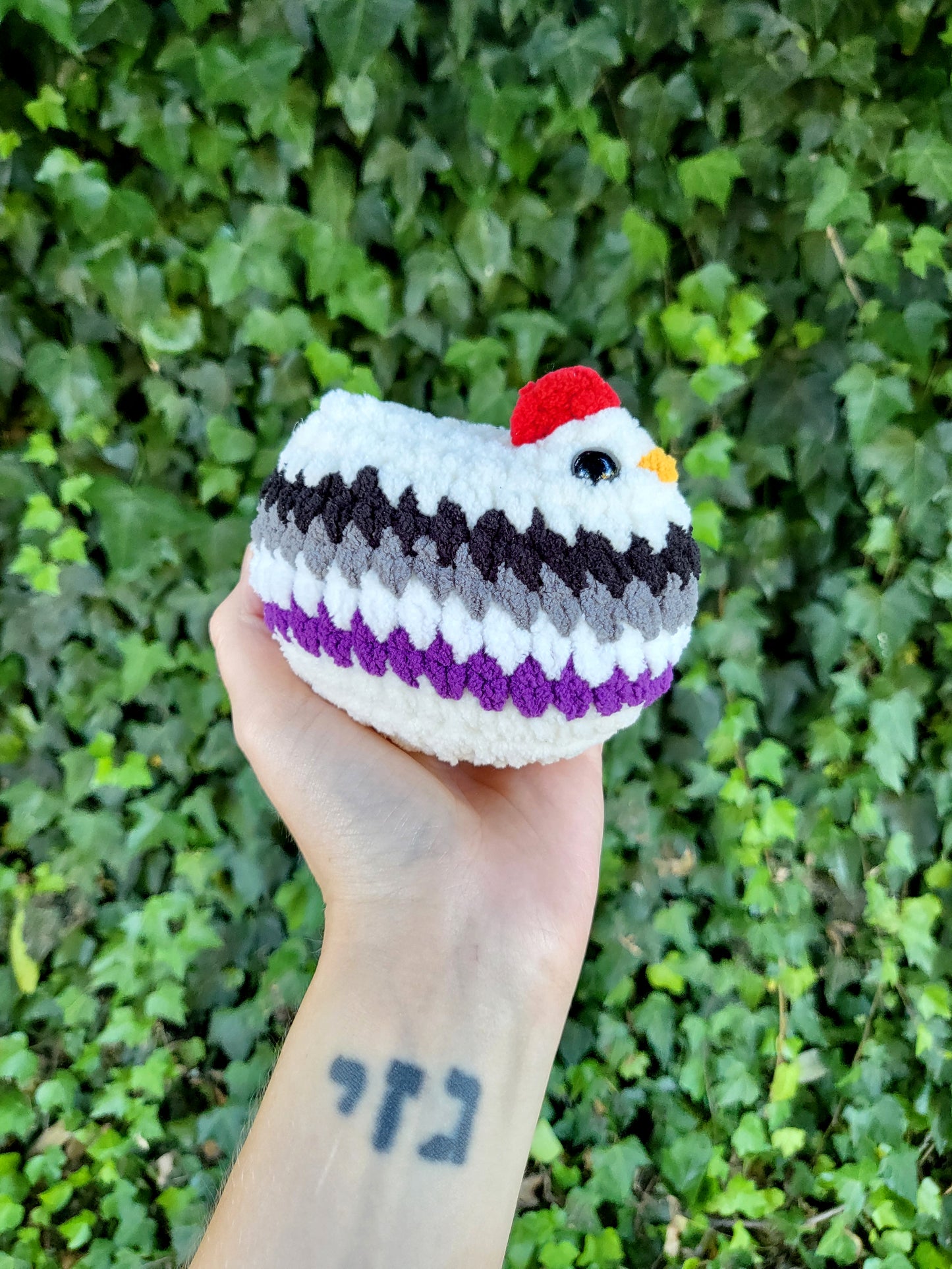 SHOW YOUR PRIDE by adopting an asexual pride chicken, handmade with love! Treat yourself, gift one to a friend, or both :) This proud little chimkin is the perfect size to squish for some stress relief or to sit on your desk to cheer you up while you work.