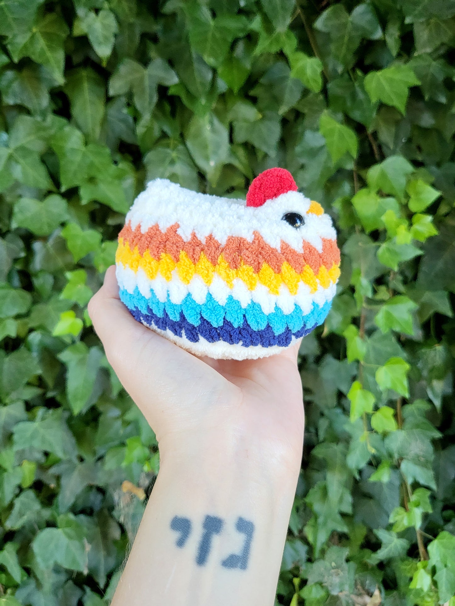 Different colors (including your pride flag) can be made upon request! Please use the Contact page on our site. Also, check out our classic chicken plushies HERE!